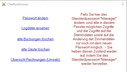 Gehen Sie zu den Cheffunktionen: