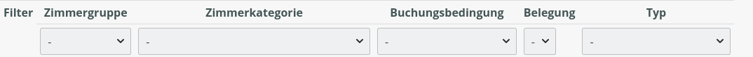 Dort können Sie nach Zimmergruppe, Zimmerkategorie, Buchungsbedingung, Belegung oder Typ (Webbuchung, Channel-Manager, etc.) filtern und nur die Raten sehen, die im Moment gerade relevant sind.
